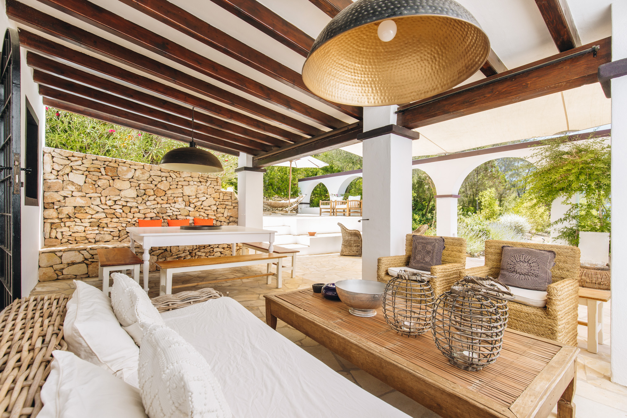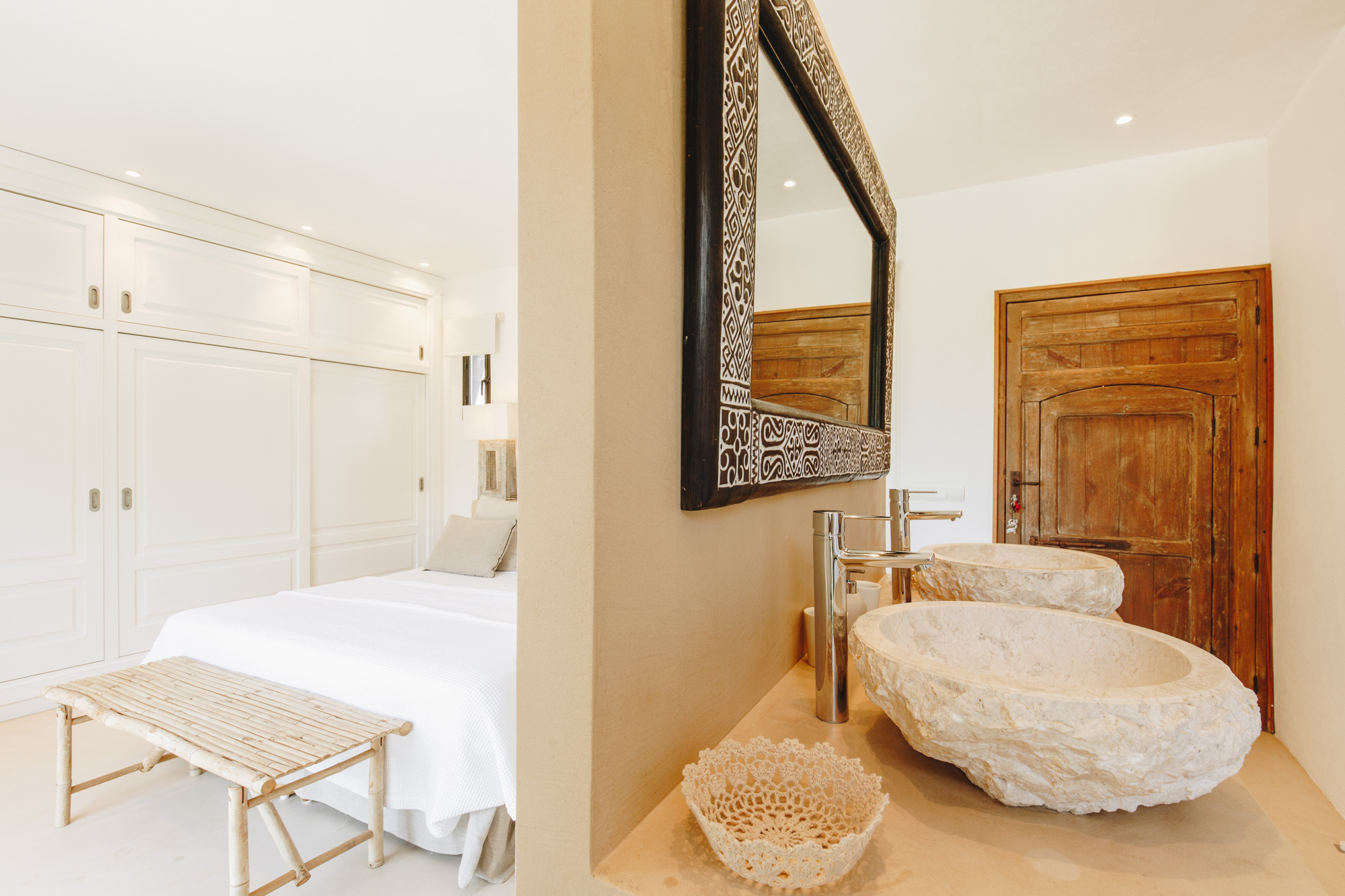 Inside, we have 4 spacious suites located in the main house, one of them with additional external access. 2 more spacious and tasteful suites are in the lower grounds on the other side of the pool area.